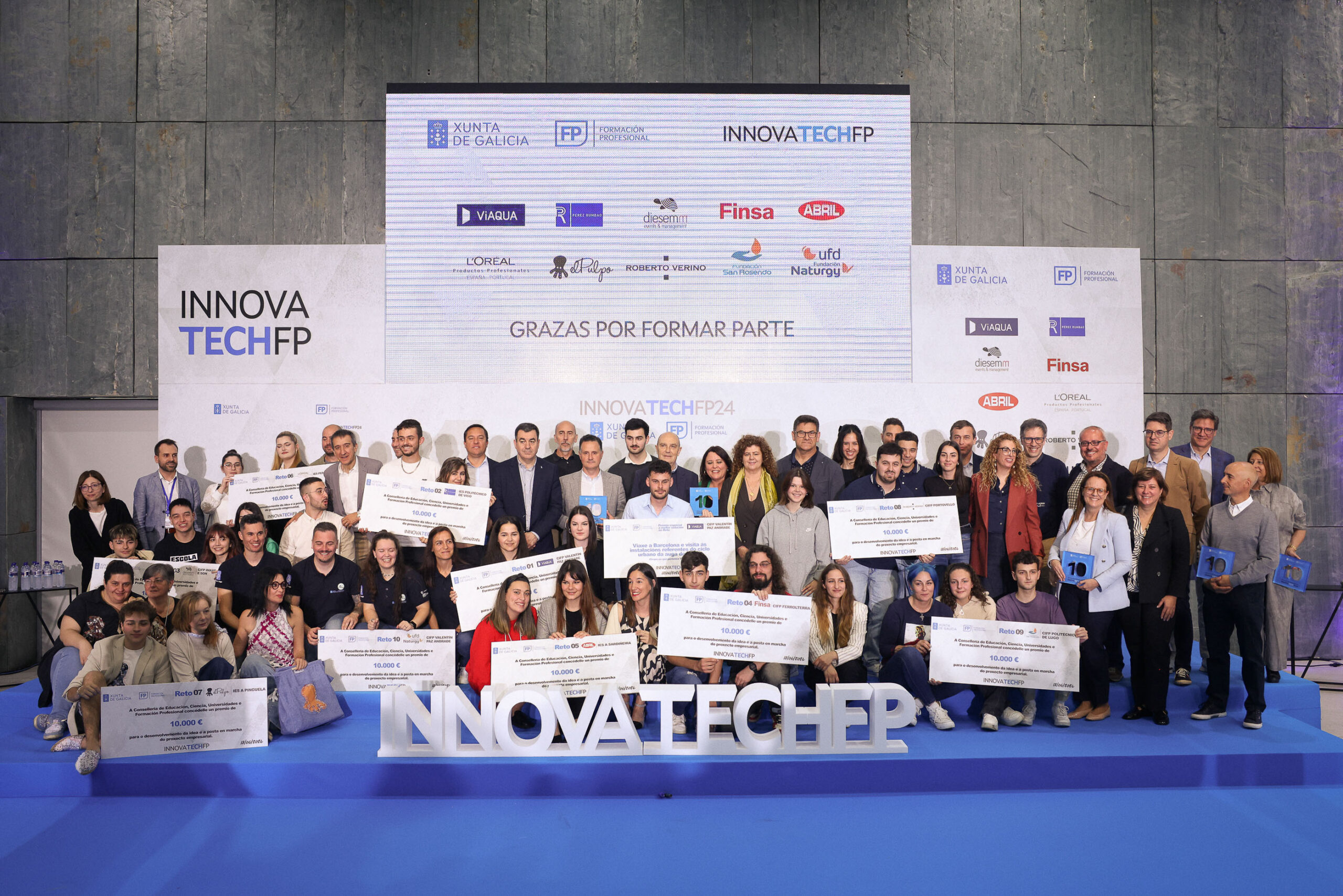 Os centros integrados de FP Valentín Paz Andrade, Imaxe e Son, Ferrolterra, Portovello e Politécnico de Lugo, así como os institutos Politécnico de Vigo, A Sardiñeira, Perdouro e A Pinguela proclámanse vencedores dos retos da primeira edición de Innovatech FP. Os participantes tiveron que afrontar a solución de 10 retos tecnolóxicos presentados por distintas empresas referentes da nosa comunidade.