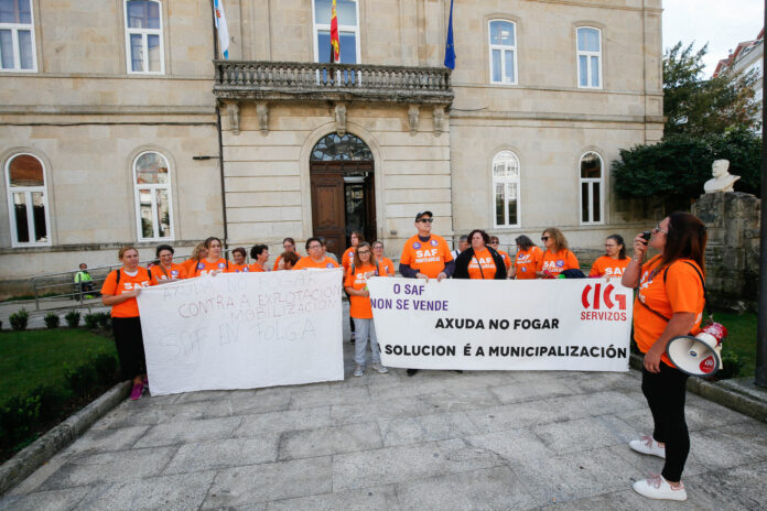 Traballadoras do SAF de Ponteareas: «Seguiremos rebentando os plenos ata que teñamos unha solución»