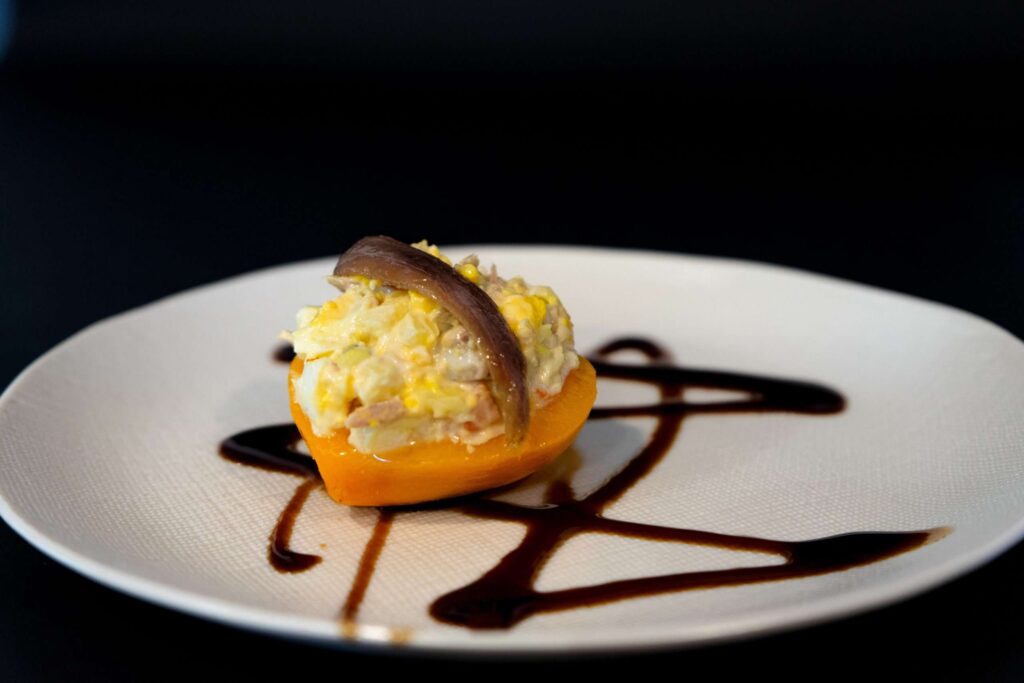 Unha ensalada fresca de melocotón, atún e hortalizas con patata cocida, mazá e ovo, un equilibro entre dulzor, textura e suavidade. Un plato lixeiro, colorido e cheo de matices mediterráneos.