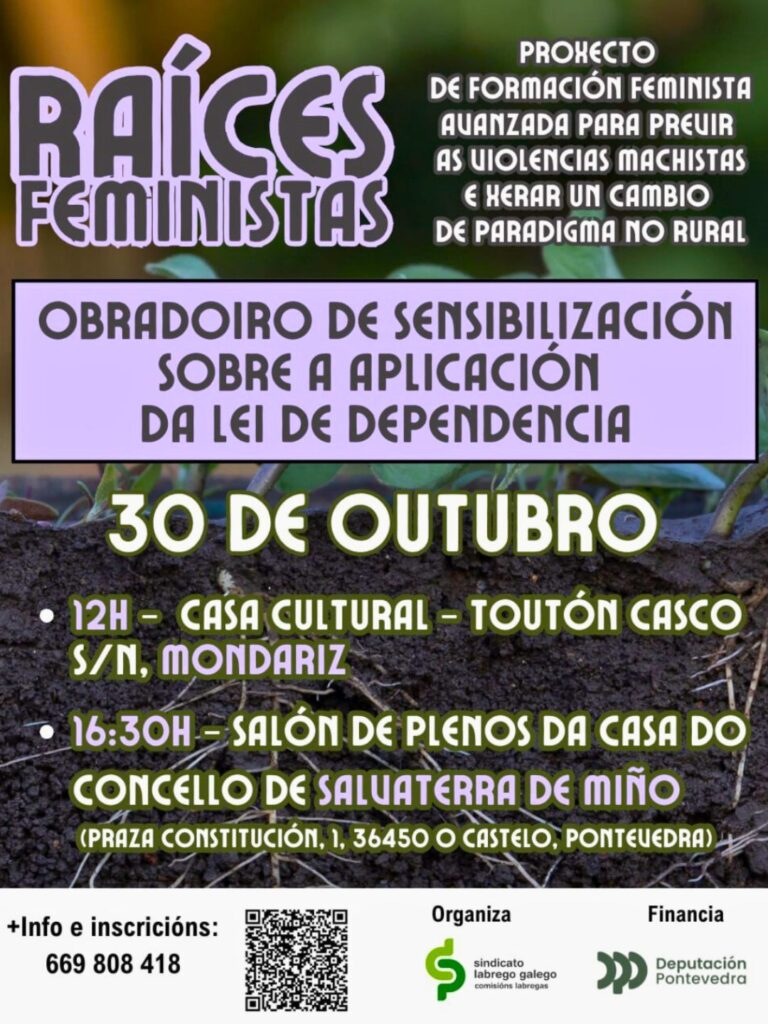 A Secretaría das Mulleres do Sindicato Labrego Galego organiza un obradoiro de sensibilización sobre a aplicación da Lei de Dependencia, destinado a mulleres e pensado para compartir información útil, experiencias e ferramentas para o coidado e o benestar.