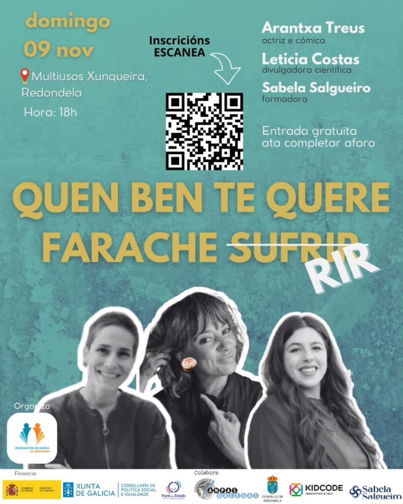 Arantxa Treus, Leticia Costas e Sabela Salgueiro presentan un espectáculo para reflexionar en clave de humor sobre as relacións persoais e como deben ser para que sexan sas e respectuosas, titulado «Quen ben te quere, farache rir«.
