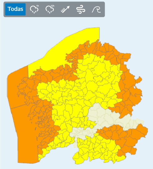A maiores, outras zonas da comunidade tamén manteñen activo o aviso por choivas, vento, ou ondas, chegando nalgúns casos a ser laranxa. Agárdase que as alertas finalizen na noite do mércores ao xoves.
