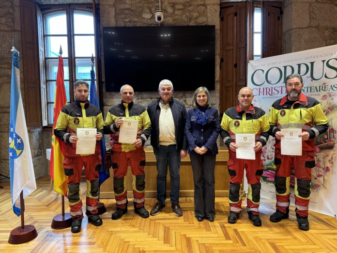 Os bombeiros distinguidos foron o xefe do parque Roberto Castro Alonso e os profesionais Carlos Carrera Novoa, José Rodríguez Cuña e Pablo Araújo Fernández, en recoñecemento á súa entrega, profesionalidade e compromiso nun operativo de emerxencia sen precedentes pola súa complexidade, extensión e impacto.