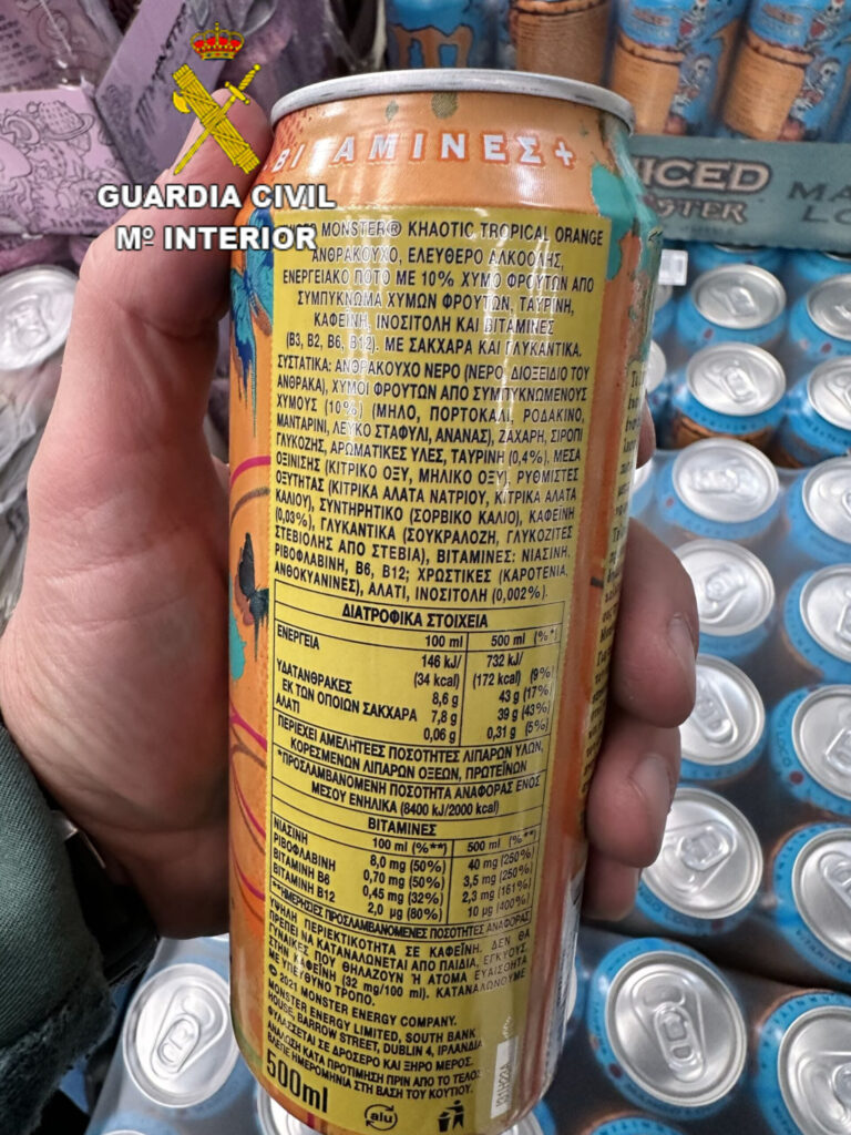 Segundo informou o Instituto Armado, os axentes localizaron varios palés deste produto e comprobaron que numerosos envases carecían de etiquetaxe en español, requisito obrigatorio ao tratarse dun alimento destinado ao consumo humano. Ante esta irregularidade, procedeuse á aprehensión e precintado do material, composto por envases de 500 mililitros de capacidade e de distintos sabores.