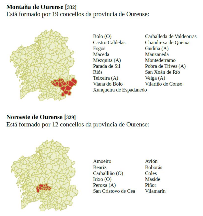 Os concellos afectados polas distintas suspensións son os seguintes: