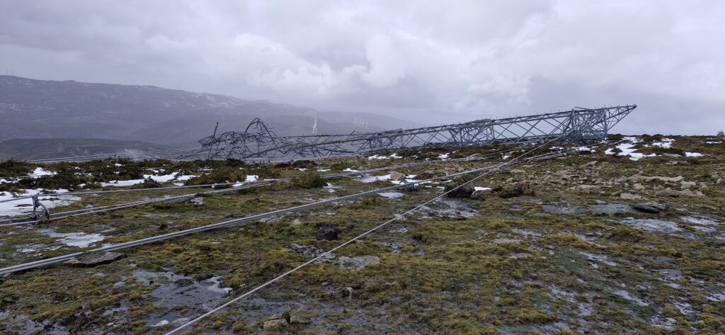 Torre de Alta Tensión que a Borrasca Ingrid derrubou en Covelo o sábado
